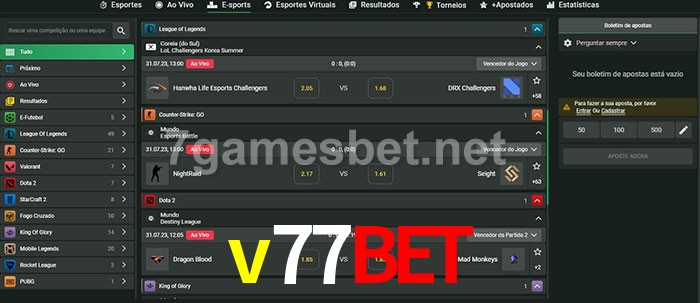 A aposta v77bet oferece aos jogadores a experiência mais conveniente de apostas em eSports!